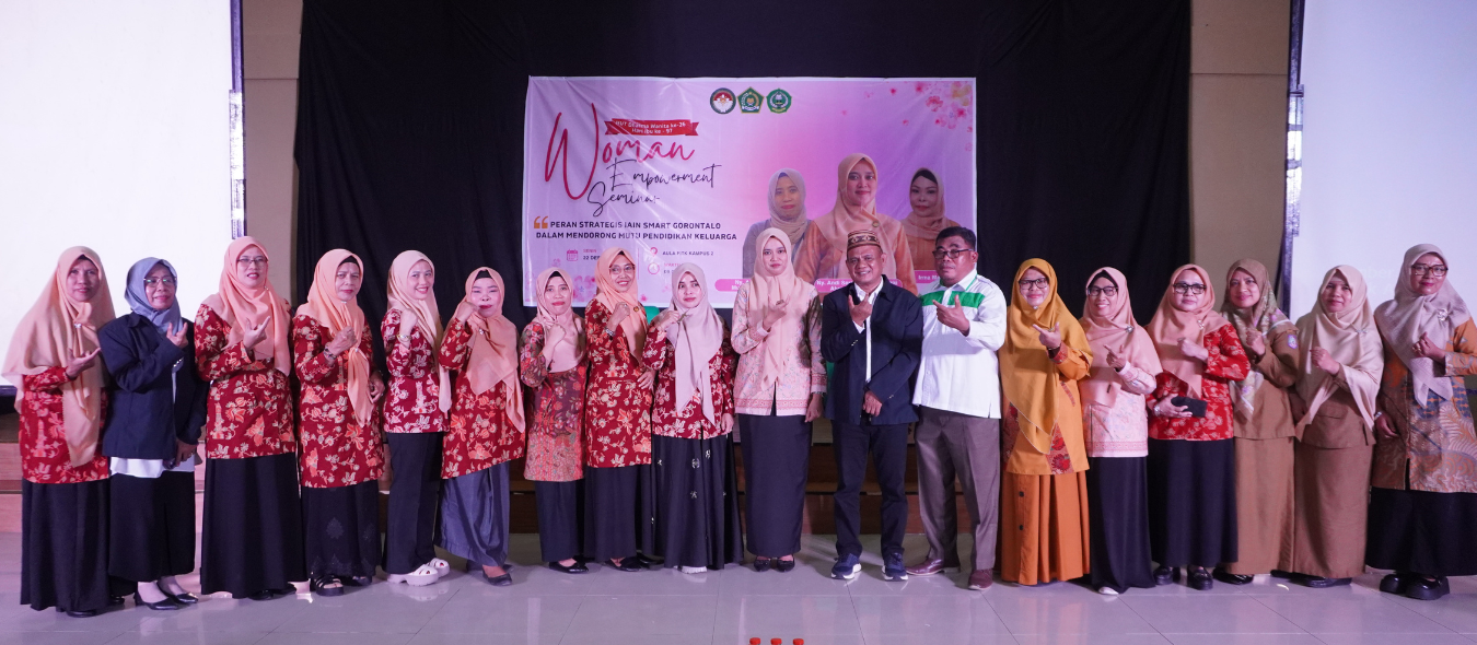 GORONTALO (IAINSmart) – Dalam rangka HUT DWP ke-26 dan Hari ibu ke- 97, Dharma Wanita Persatuan (DWP) Institut Agama Islam Negeri Sultan Amai Gorontalo (IAIN Smart) menyelenggarakan Women Empowerment Seminar dengan tema “Peran Strategis IAIN Smart Gorontalo dalam Mendorong Mutu Pendidikan Keluarga”. Kegiatan ini bekerja sama dengan prodi PGMI FITK IAIN Smart di Aula FITK Kampus II IAIN Smart, Senin (22/12/2025).