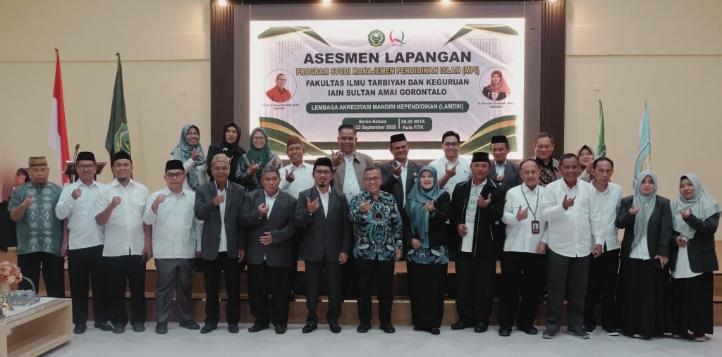 GORONTALO (IAINSAG) – Program Studi (Prodi) Manajemen Pendidikan Islam (MPI) Fakultas Ilmu Tarbiyah dan Keguruan (FITK) IAIN Sultan Amai Gorontalo, mengadakan kegiatan Asesmen Lapangan Akreditasi dari Lembaga Akreditasi Mandiri Kependidikan (LAMDIK), di Aula FITK Kampus II IAIN Sultan Amai Gorontalo, yang dihadiri Oleh Wakil Rektor II, Dr. Mujahid Damopolii, M.Pd, Dekan FITK Dr. Said Subhan Posangi, M.Pd, Ketua LPM, Dekan FEBI & Dekan Fakultas Syariah Serta Seluruh Tendik dilingkungan Fakultas Ilmu Tarbiyah & Keguruan IAIN Sultan Amai Gorontalo. Kegiatan ini menghadirkan dua asesor dari LAMDIK yaitu Prof. Dr. H. Encep Syarifudin, M.Pd., dan Dr. Chusnul Chotimah, M. Ag.. Senin (22/09/2025)