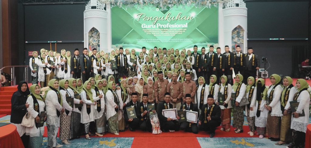 Gorontalo (IAINSAG) – Institut Agama Islam Negeri (IAIN) Sultan Amai Gorontalo terus menunjukkan kiprah nyata dalam pengembangan pendidikan guru di Indonesia. Lembaga Pendidikan Tenaga Kependidikan (LPTK) secara resmi mengukuhkan 1.243 guru profesional lulusan Pendidikan Profesi Guru (PPG) dalam Jabatan Transformasi+ Kementerian Agama Batch 1 tahun 2025, yang dilaksanakan di Gedung Azlea Convention Centre. Senin (15/09/2025).