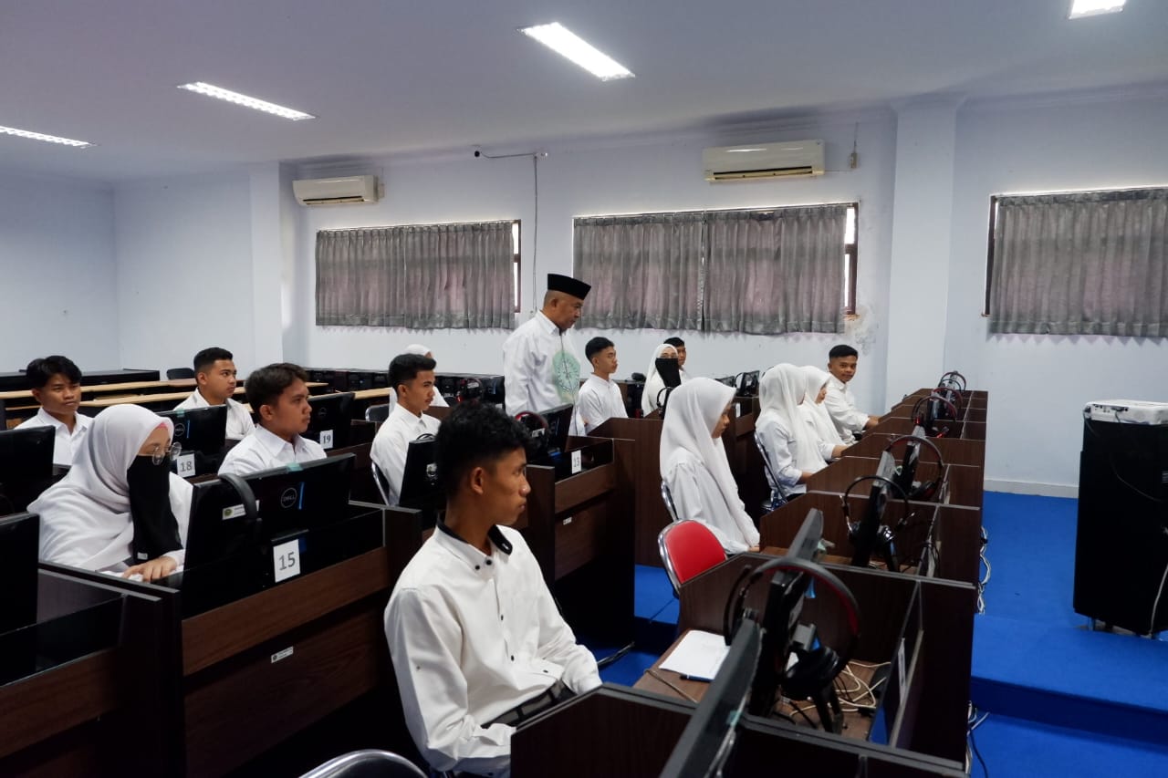 GORONTALO (IAINSAG) – Wakil Rektor I IAIN Sultan Amai Gorontalo sekaligus Ketua Panitia Lokal, Prof. Dr. H. Sofyan A.P. Kau, M.Ag., bersama Ketua Lembaga Penjaminan Mutu (LPM), Dr. H. Ajub Ishak, M.A., memantau langsung pelaksanaan UM-PTKIN hari ke-2 yang berlangsung di laboratorium Terpadu Kampus 2 IAIN Sultan Amai Gorontalo, Selasa (30/05/2023). Hal ini guna memastikan kelancaran pelaksanaan UM-PTKIN.