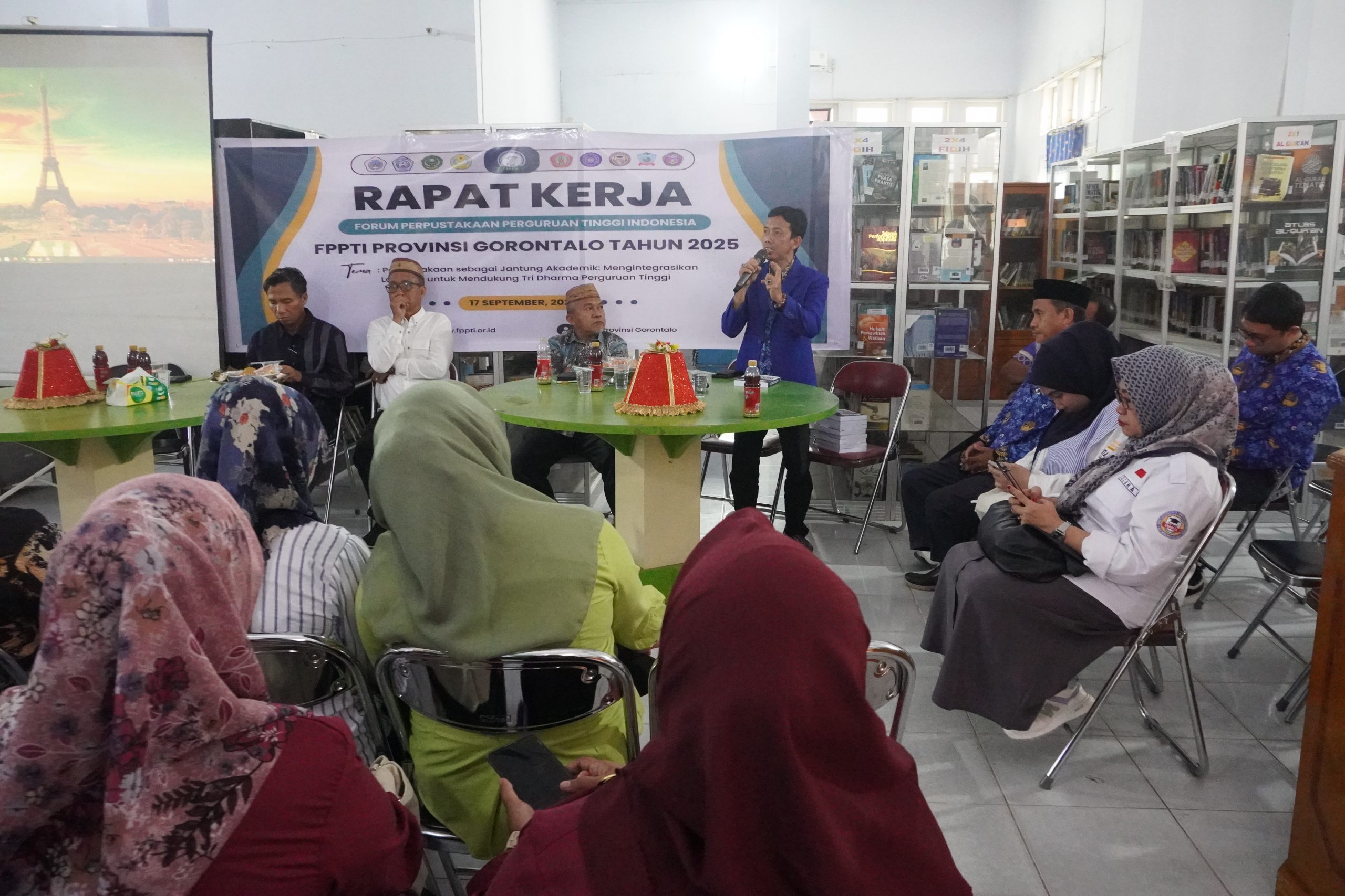 GORONTALO (IAINSAG) – Unit Pelaksana Teknis (UPT) Pusat Perpustakaan Institut Agama Islam Negeri (IAIN) Sultan Amai Gorontalo bersama Forum Perpustakaan Perguruan Tinggi Indonesia (FPPTI) Provinsi Gorontalo menggelar Rapat Kerja dengan tema Perpustakaan sebagai Jantung Akademik: Mengintegrasikan Layanan untuk Mendukung Tri Dharma Perguruan Tinggi, yang bertempat di Ruang Perpustakaan Kampus 1 IAIN Sultan Amai Gorontalo, Rabu (17/09/2025).